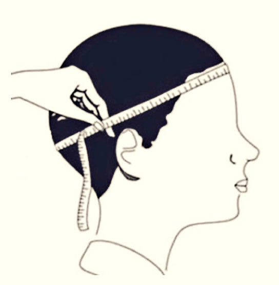 Using a tape measure, wrap the tape around your head from the forehead, above the ears and around to the fullest part of the back of the head. Don’t pull the tape too tight. Head sizes usually range from 53cm to 58cm with the average being about 56-57cm.